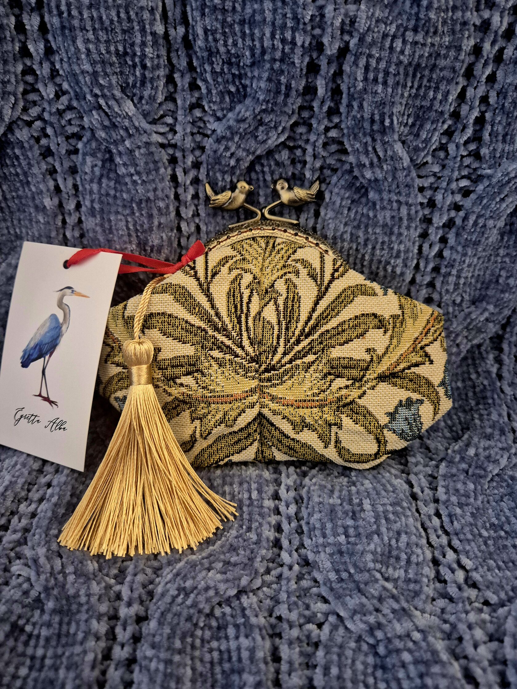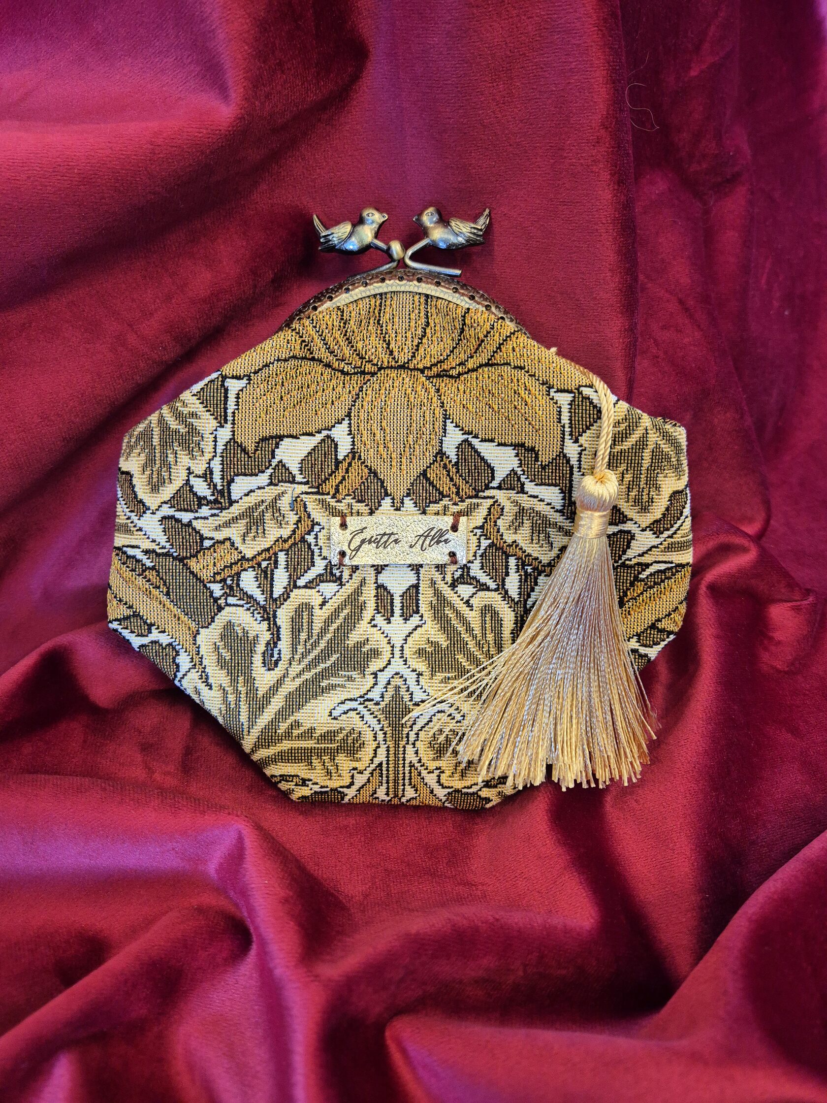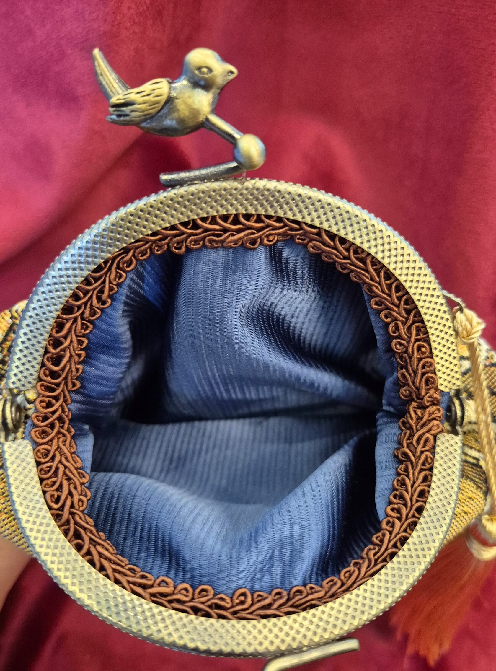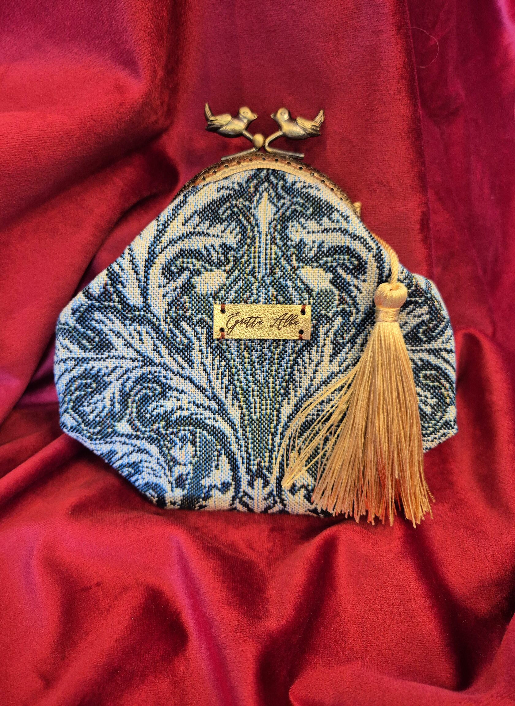 Фурнитура: бронзированный металл. Корпус: гобелен, атлас. Шильд: натуральная кожа.